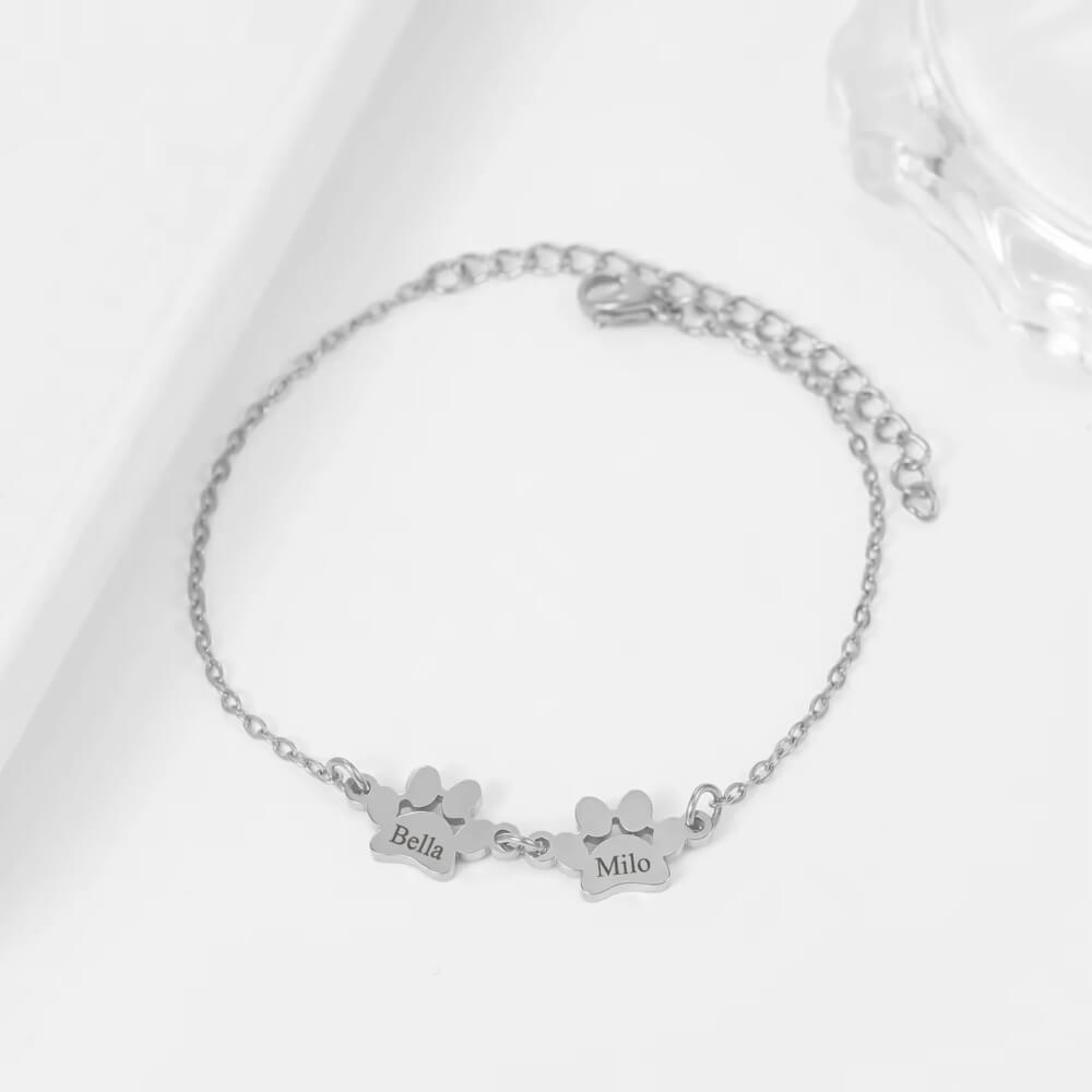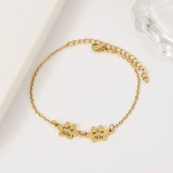 I love my custom pet name paw bracelet! The engraving is clear and beautiful, and it’s such a meaningful reminder of my dog. I wear it every day!