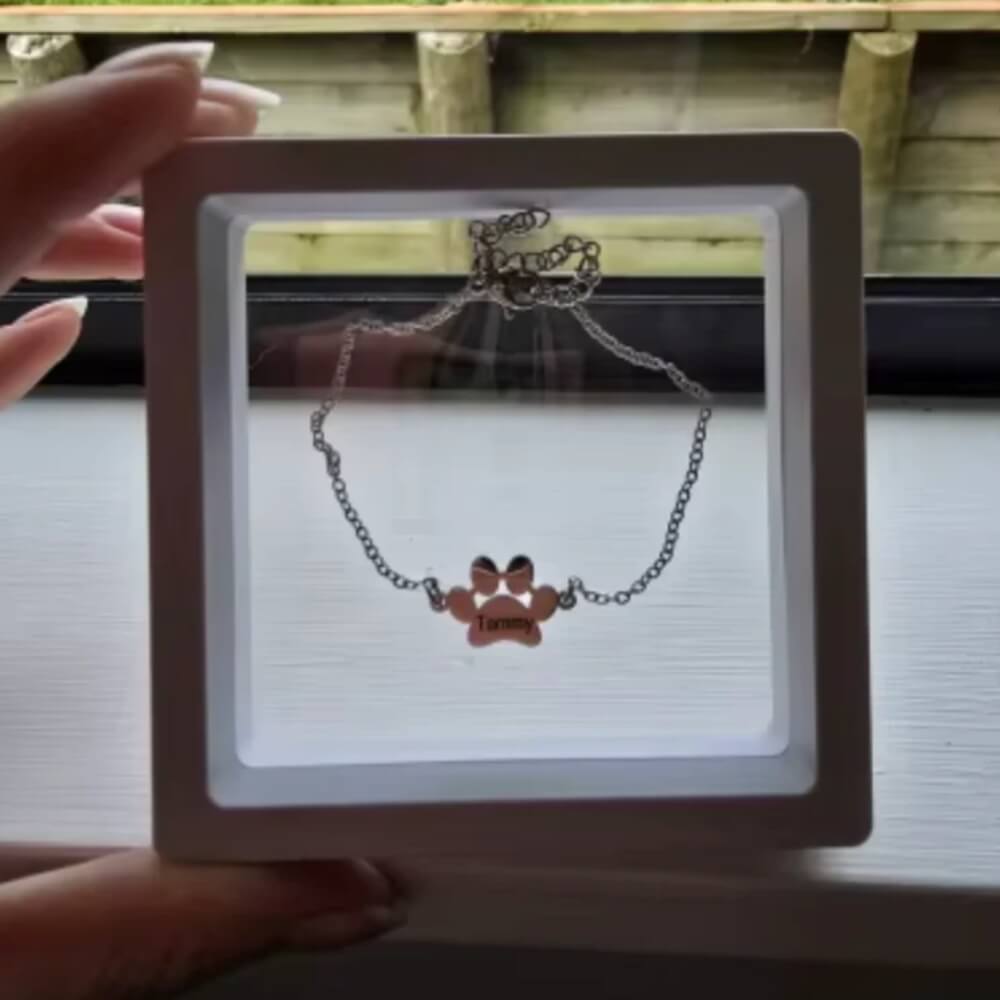 I’m so happy with my custom pet name paw bracelet. The fit is perfect, and it’s such a lovely way to remember my cats. It’s a piece I’ll always treasure.